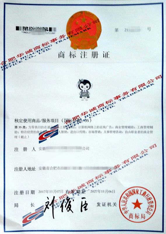 您委托我所代理商标注册申请,名称为“图形” 28、35类商标注册证已下达。