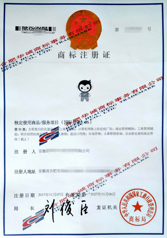 您委托我所代理商标注册申请,名称为“图形” 28、35类商标注册证已下达。