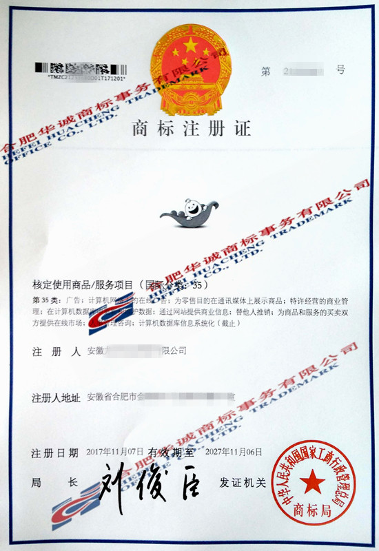 您委托我所代理商标注册申请,名称为“图形” 9、35、42类商标注册证已下达。